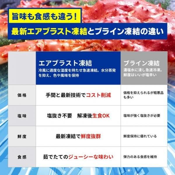 たらばがには冷凍時に鮮度劣化を防ぐ為、グレーズ(氷の膜)処理による冷凍加工を行っております。 その為、解凍後はグレーズ重量が目減りいたします。