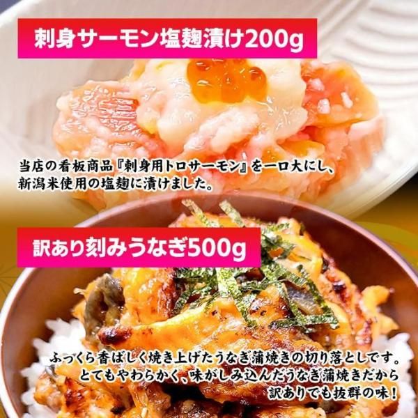 ボイルずわいかに、いくら、数の子、刻みうなぎ、ねぎとろ等、高級食材12商品を詰め込んだ超得福袋です。